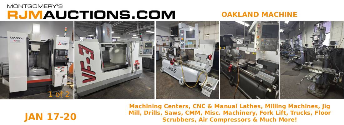 Machining Centers, CNC & Manual Lathes, Milling Machines, Jig Mill, Drills, Saws, CMM, Misc. Machinery, Fork Lift, Trucks, Floor Scrubbers, Air Compressors & Much More!