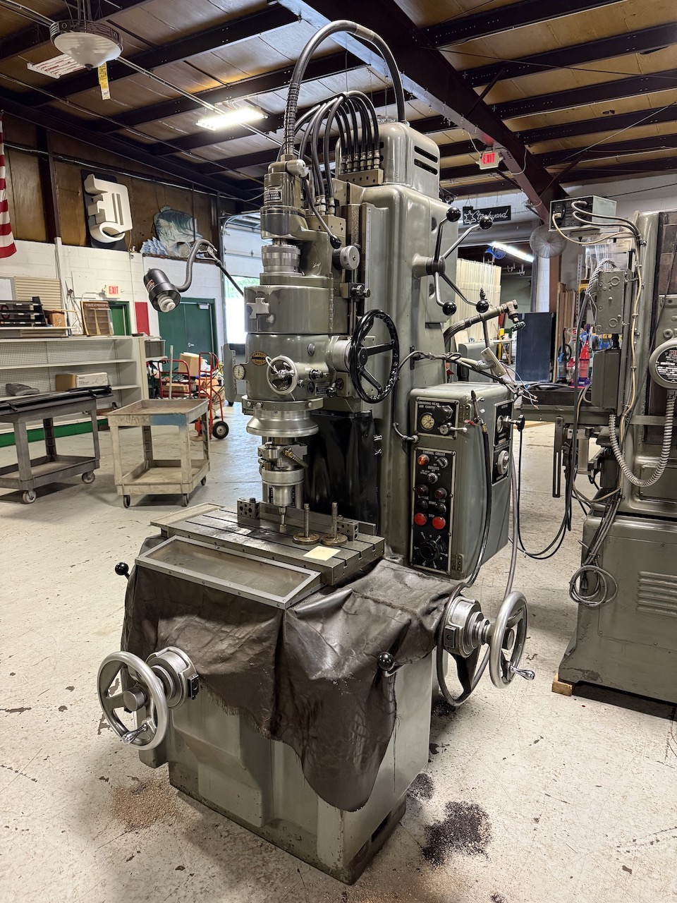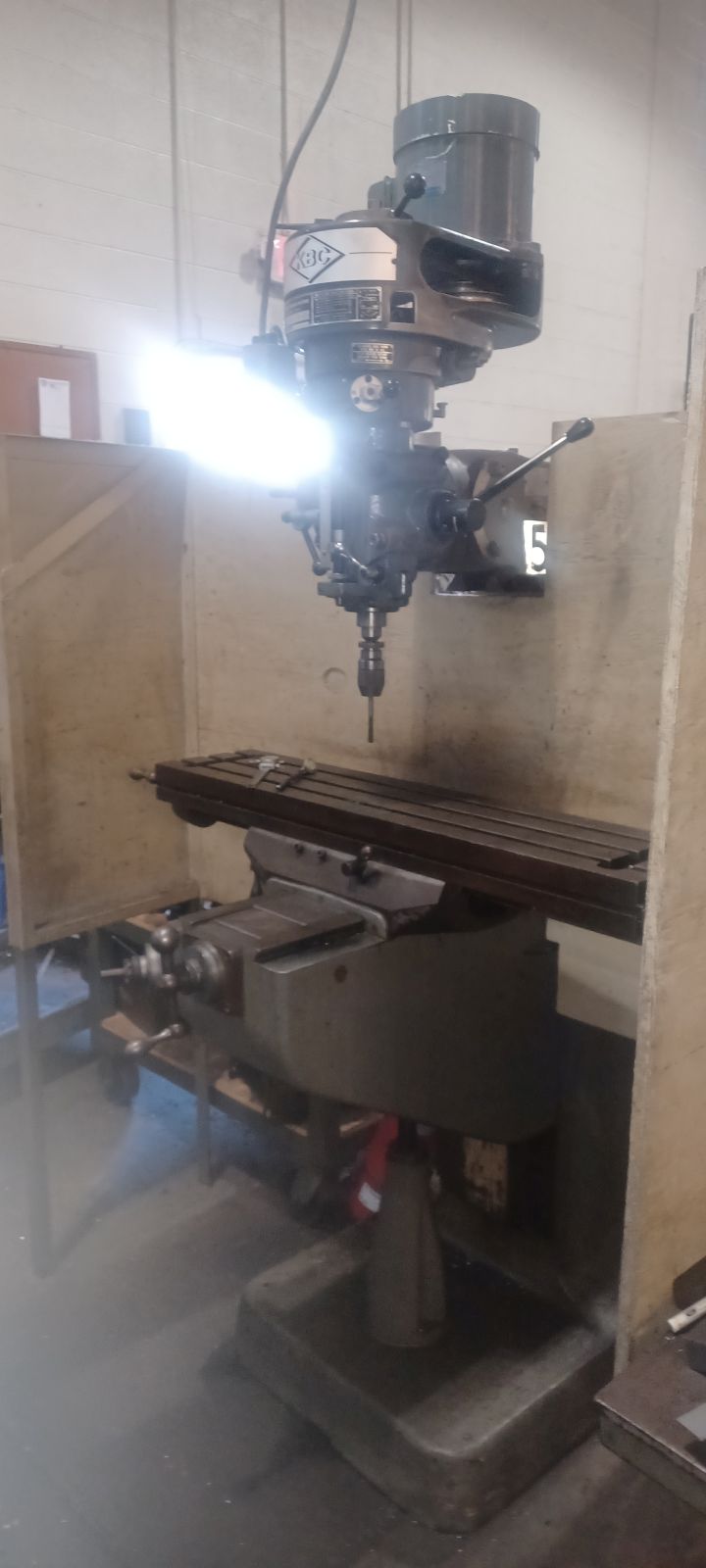KBC 2 HP VERTICAL MILLING MACHINE, S/N 12BR186038, 4” RISER, MOUNTED ON BRIDGEPORT BASE